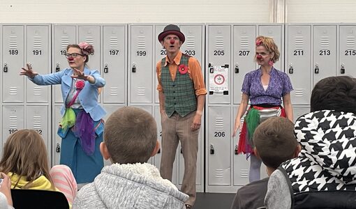 Musikalisch blieb es dann, wenn auch sehr erstaunlich und humorvoll! Aber genau das ist es, was Clowns, und insbesondere die von den ROTE NASEN Deutschland e.V. machen: Menschen zum Staunen und Lachen bringen. Der künstlerische Leiter Reinhard Horstkotte alias Clown Filou spielte die Backpfeifensonate, indem er sich mit den Händen auf die Backen klatschte, bis diese fast so rot waren wie seine Nase.