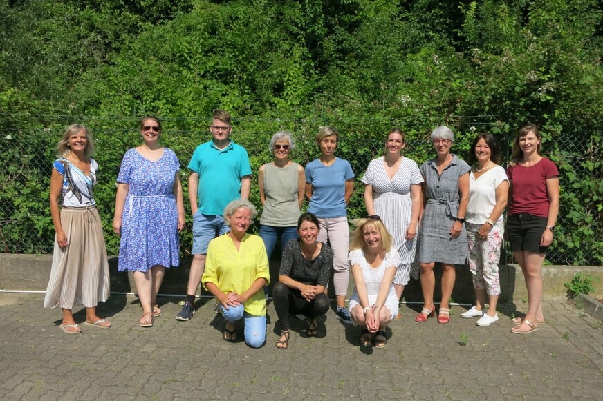 Vom 27. Juni bis zum 1. Juli 2022 fanden die Early Excellence-Fortbildungstage der Stadt Braunschweig statt. Unter der Leitung der Early Excellence-Expertin Barbara Kühnel (Bild: obere Reihe, 2. v. re.) und mit Unterstützung von Claudia Bruszies, Fachberaterin für Familienzentren in Braunschweig, kamen 15 Teilnehmende aus 25 Kinder- und Familienzentren sowie sieben Kitas aus dem Raum Braunschweig zusammen. Die Veranstaltung fand zeitgleich mit dem zehnjährigen Jubiläum der Familienzentren statt.