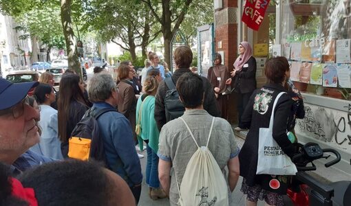 Nach ca. 3 Stunden waren eher wir Erwachsenen müde, aber auch unsere Kinder merkten, dass es Zeit war zu gehen. Auf dem Weg zum Ausgang kamen wir an einer Tür vorbei, auf der stand: Bitte leise eintreten. Shabbat!