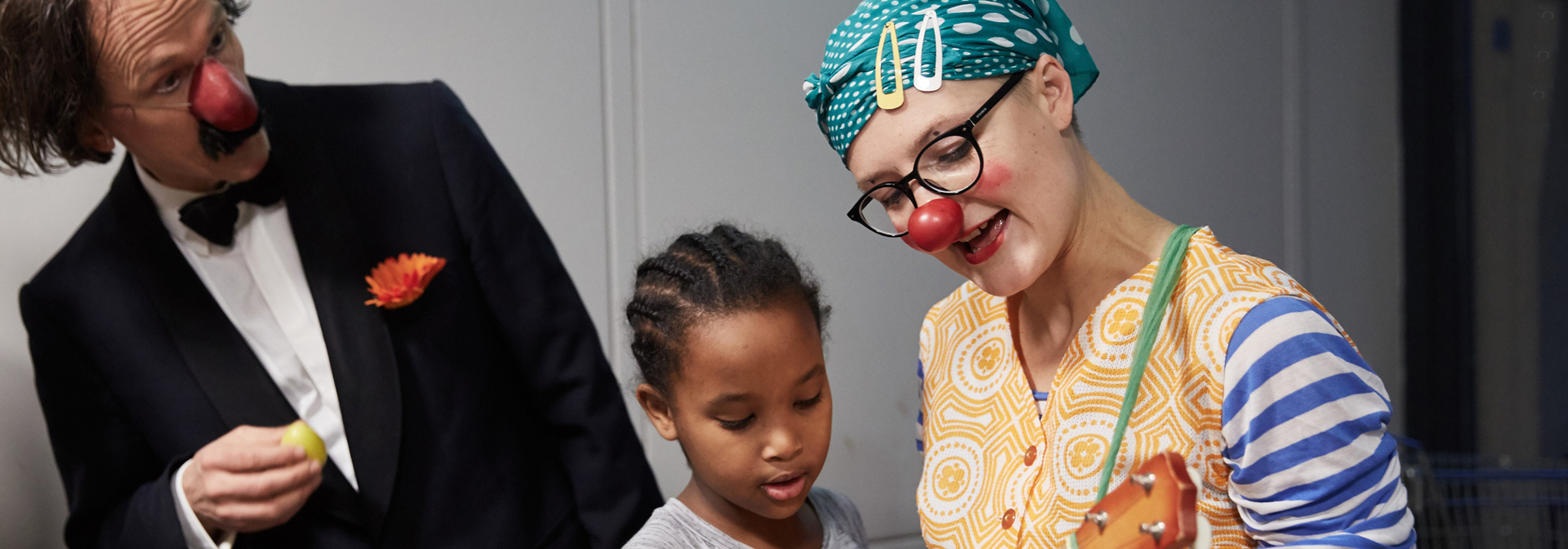 Im Jahr 2023 starteten die ROTE NASEN mit Schnupperbesuchen im Ukrainischen Ankunftszentrum (UA) des DRK in Tegel, die sich aufgrund der großen Resonanz zu regelmäßigen Clownbesuchen entwickelt haben. Mittlerweile werden die vielen hundert Kinder 1 x pro Woche von drei Künstler*innen aus dem Clownteam besucht.
